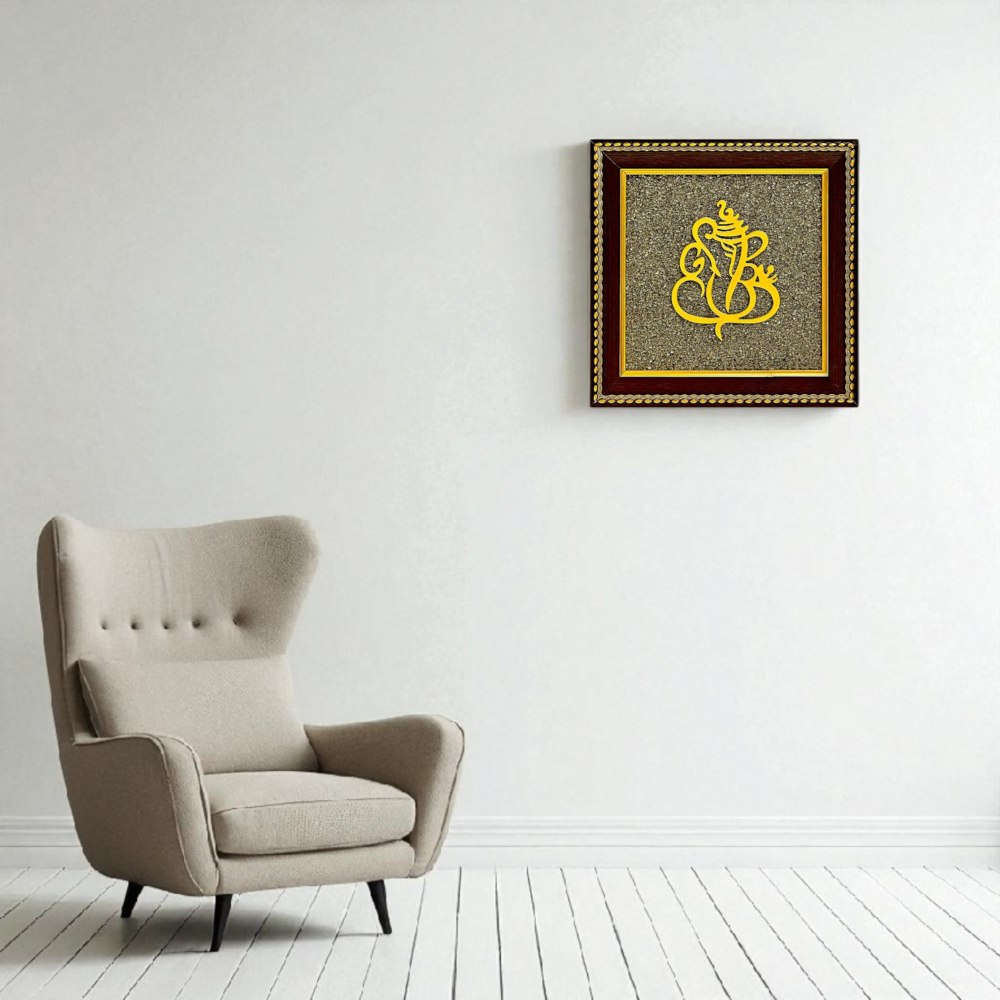 🙏 Ganesh Ji on Natural Raw Pyrite Frame – Vastu Wealth & Protection Decor
